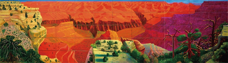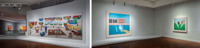 이번 전시는 영국 테이트 미술관을 비롯한 총 8개 해외 기관에서 대여한 호크니의 회화, 드로잉, 판화 133점을 7개 소주제로 나누어 구성했다. 특히 호크니의 대표작인 ‘더 큰 첨벙’, ‘클라크 부부와 퍼시’, ‘더 큰 그랜드캐니언’ 같은 작품뿐만 아니라 작가의 생애별 주요 작품들을 국내 최초로 선보였다.