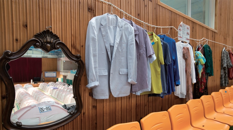 마을 언덕배기에 있는 흥해체육관에 한미장관맨션 주민들이 모여 살고 있다. 주민과 학생들의 함성과 응원 소리가 있어야 할 이곳은 지진 이후 본래 역할을 잃었다. 초기에는 200여 명의 주민이 이곳으로 대피해 머물렀다. 지금은 외지로 흩어지고 30여 명이 남았다.