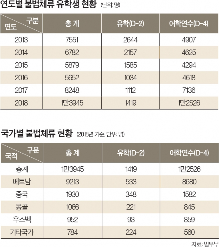 불법체류자 유학생, 2년 새 두 배로 늘어