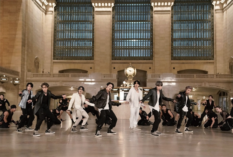 ‘키네틱 매니페스토 필름’이라는 낯선 명칭으로 ‘온’의 첫 번째 뮤직비디오를 공개한 데 이어 첫 방송으로 미국 NBC ‘더 투나잇 쇼 스타링지미 팰런’을 택한 것도 상징적이다. 뉴욕 기차역인 그랜드 센트럴 터미널에서 대규모 퍼포먼스를 펼침으로써 대중의 이목을 집중시킨 것. 이규탁 교수는 “미국 대학에서 행진할 때나 스포츠 경기에서 등장하는 화합의 상징인 마칭밴드를 K팝에 녹여내고, 다국적 댄서와 협연하면서도 그 중심에 한국인 방탄소년단이 위치함으로써 일종의 문화적 선언을 하는 느낌”이라고 평했다.