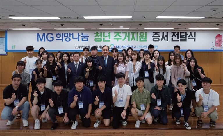 청년들을 위해 MG새마을금고가 희망을 나누어 주고 있어요. 매달 25만원 씩 6개월간 100명의 청년들의 주거비를 지원해주는 내집(Home)잡(JOB)기 프로젝트를 시행하고 있지요. 벌써 3회째를 맞이하는 사업으로, MG새마을 금고는 지역민들과 희망 나눔을 하고 있어요.