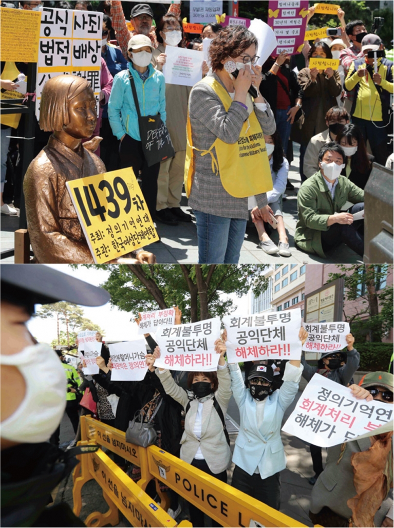 위안부 운동을 이끄는 축은 크게 세 그룹으로 나뉜다. 피해 당사자인 할머니들과 이들의 실질적인 명예회복을 돕는 활동가 그룹, 위안부 참상을 학문적으로 밝혀 운동의 역사적 당위성을 제공하는 연구자 그룹이다. 연구자 그룹은 대중 운동의 오류를 바로잡는 역할을 해왔다. 정의연의 전신인 정대협이 이름을 바꾸게 된 계기도 위안부와 근로정신대가 다르다는 학문적 연구 결과가 바탕이 됐다.