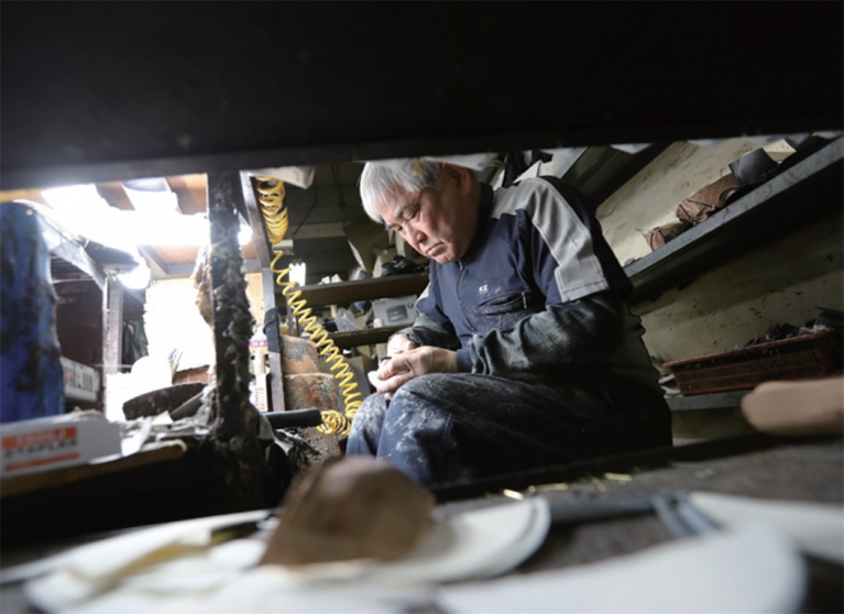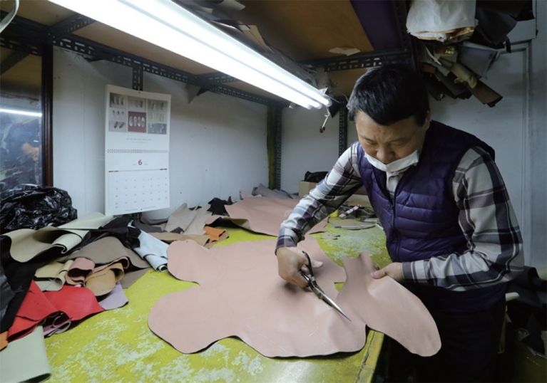 이곳에서 일하는 주형래(68)씨는 디자인에 따라 원단 가죽에 패턴을 만들고, 재단한 뒤 재봉질해 구두 윗부분인 ‘갑피’를 만드는 일이 주 업무이다. 1969년 중학교 졸업 후부터 지금까지 50년 넘게 이 일을 하고 있다. 조광섭(66)씨는 주씨가 만든 갑피를 신발 바닥에 결합하는 ‘저부’ 작업을 맡고 있다. 주씨 못지않은 경력(47년)을 자랑한다.