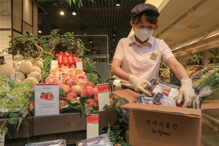 현대백화점은 2년 전 변변한 물류센터가 없었던 점을 교훈 삼아 이번엔 경기도 김포에 물류센터를 마련했다. 상품 입고와 보관·포장·배송 등 물류 관련 업무는 현대자동차그룹 산하 물류회사 현대글로비스에게 위탁했다. 대형마트와 물류 계열사가 없어 물류와 배송을 모두 외부에 맡겨 해결한 것이다.