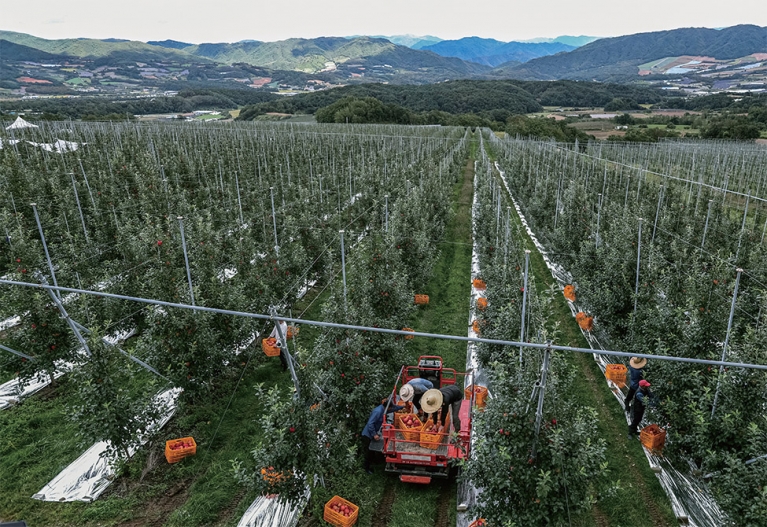 애플카인드 사과밭이 이곳에 자리 잡은 이유는 지구온난화 때문이다. 1970년대 사과 주산지는 대구를 비롯해 경산·영천·경주 등 경북 남부에 집중돼 있었다. 전국 생산량의 80% 이상이 이 지역들에서 나왔다. 그러나 기후변화로 인해 2015년엔 청송·영주·문경·봉화 등 경북 북부의 소백산맥 줄기와 충주·제천·괴산·예산 등 충청도까지 사과의 ‘북방 한계선’이 올라왔다.