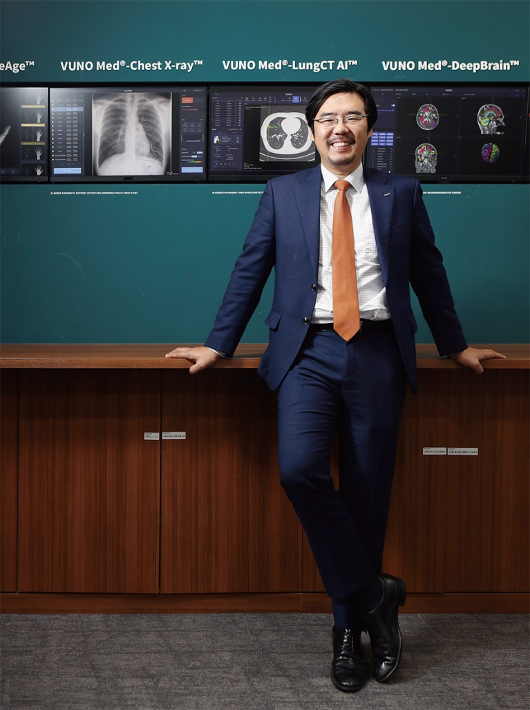 뷰노는 이 밖에도 뼈, 흉부, 뇌 영상 분석 등 5가지 AI 의료기기를 상용화했다. 삼성전자 종합기술원에서 딥러닝을 연구하던 AI R&D팀 출신 3명이 만나 2014년에 공동 창업했고, 6년 만에 110여 명 규모로 성장하며 AI 의료 분야에서 세계적인 기술력을 자랑하는 기업으로 거듭났다. 김익환 한세실업 부회장이 김현준 뷰노 대표를 만나 AI 의료 솔루션의 비전을 물었다.