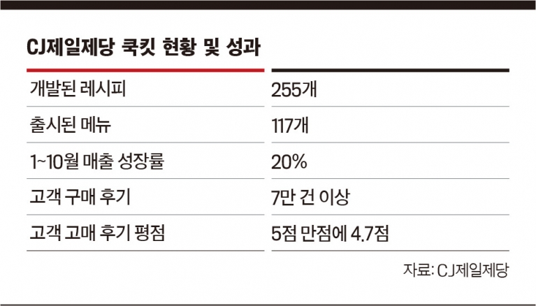 신 부장은 “메뉴 초안을 잡는 과정에만 11명의 셰프가 10회 이상의 조리 및 평가를 진행한다”며 “쿡킷 담당직원들뿐만 아니라 다른 부서 직원들의 평가를 받아야 하기 때문에 메뉴 출시 때마다 서바이벌 오디션을 치르는 심정”이라고 했다. 이 같은 검증을 뚫고 현재까지 출시된 메뉴는 117개이며, 개발된 레시피는 255개다.