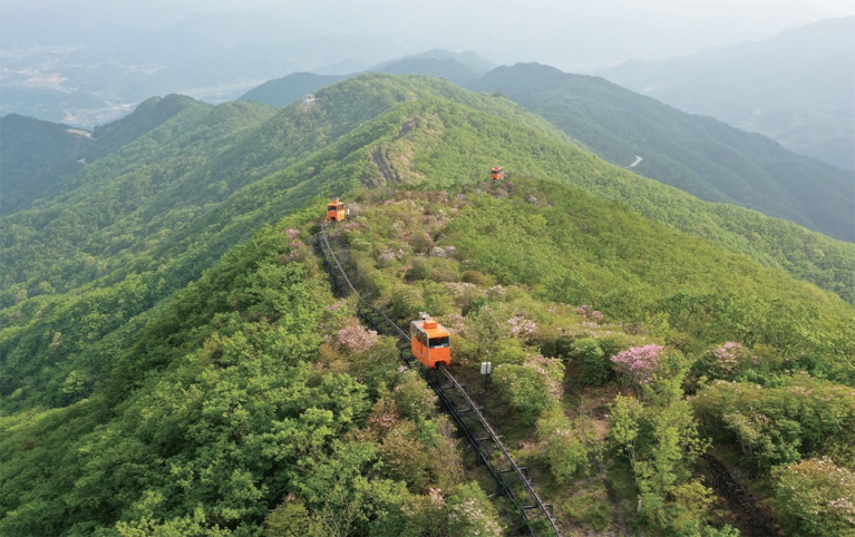 “4월 21일 함양군 병곡면 대봉산 일원에 정식 개장한 대봉산휴양밸리가 요즘 힐링 휴양시설 가운데 ‘핫플레이스’로 자리매김하고 있다. 국내 최장(3.93㎞) 구간의 산악형 모노레일과 자유비행 방식으로 국내 최장 거리(3.27㎞)와 최고도(1228m)에 코스마다 속도가 다른 대봉집라인이 자랑거리다. 피톤치드 가득한 치유의 숲길을 걸으며 자연과 하나 되고 자신만의 시간을 가질 수 있는 산림욕장이 대봉산 전체에 가득하다.”