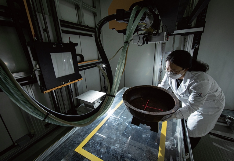 문제가 발견되면 담당 부서로 보내 보존 작업에 들어간다. 가로, 세로, 높이가 각 3.3m에 이르는 이 X-Ray 촬영 장비는 국내에서 가장 크다. 목가구나 병풍 등 대형 유물 촬영도 문제없다. 촬영을 담당하는 김 학예사는 “시간이 지나며 지워졌지만, 금속 성분이 접착제와 함께 표면에 남아 있는 게 확인돼 옛 문양을 복원한 경우도 있다”며 “눈에 잘 띄지 않는 사소하고 작은 것도 남겨야 할 우리의 전통”이라고 말했다.