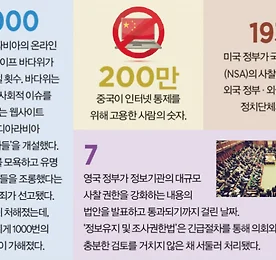 숫자로 살펴보는 전세계 인터넷 표현자유 침해사례 이제 많은 사람들의 대화는 모바일 메신저를 통해 이루어진다. 사생활이 고스란히 담긴 메시지를 누군가 몰래 볼 수 있다면? 자신의 개인 사생활이 침해당하는 것에 대한 우려가 높다. 카카오톡 대화를 검찰이 감청해왔다는 것이 드러나면서 많은 사용자들이 외국 메신저 프로그램인 텔레그램으로 옮겨가고 있는 상황이다. 쉽게 사그라들지 않은 이 현상은 온라인 상의 표현 검열에 대한 논쟁을 다시 불러일으켰다. 9월 8일 인권보호단체 국제앰네스티는 세계 각국에서 벌어지고 있는 온라인상의 표현 검열 상황을 발표했다. 인터넷 통제권을 강화하는 움직임은 선진국과 개발도상국을 막론하고 동시에 이뤄지고 있는 상황이다. 대표적인 숫자를 통해 전세계적인 인터넷 표현의 자유 침해 사례를 살펴본다. 1000 사우디아라비아의 온라인 활동가.. 더보기 이전 1 ··· 1100 1101 1102 1103 1104 1105 1106 ··· 1187 다음