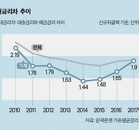 금리인상 후 은행 이자이익만 최대 기록... 지난해 한국은행은 글로벌 금융위기 이후로 10년만에 기준금리를 인상했다. 예금금리보다 대출금리가 빨리 오르면서 예대금리차가 7년만에 최고를 기록했다. 금리인상으로 지난해 은행은 이자수익이 5년만에 최대를 기록했다. 지난해 예금금리보다 대출금리가 빨리 오르며 예대금리차가 7년 만에 최대를 기록했다. 한국은행 가중평균금리 통계를 보면 지난해 신규 취급액 기준 연평균 가계대출 금리는 3.46%로 전년보다 0.32%포인트 상승했다. 가계대출 금리 상승폭은 글로벌 금융위기 당시인 2008년(0.71%포인트) 이래 가장 컸다. 가계대출 금리는 2011년 0.09%포인트 오른 이래 6년 만에 상승했다. 한국은행 기준금리가 2011년 6월에 이어 6년 5개월 만인 지난해 11월 인상된 영향이 크다. 지난해 주택담보대출.. 더보기 이전 1 ··· 579 580 581 582 583 584 585 ··· 1187 다음