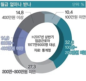 우리나라 월급쟁이는 월급을 얼마나 받을까? 통계청은 우리나라 임금노동자를 대상으로 2017년 상반기 급여수준을 조사했다. 월급이 200만원 미만인 경우는 전체 월급쟁이의 43%를 차지했다. 한편, ‘전문, 과학 및 기술서비스업’ ‘금융 및 보험업’ ‘공공행정, 국방 및 사회보장행정’은 상대적 고임금자의 비율이 높은 것으로 나타났다. 전체 월급쟁이의 43%가 월 200만원 미만의 급여를 받는 것으로 조사됐다. 통계청이 발표한 ‘2017년 상반기 지역별 고용조사’ 결과에 따르면 올 상반기 임금근로자는 1977만9000명이며, 이 중 43%에 해당하는 852만4000명의 월급이 200만원 미만이었다. 전체의 10.4%인 206만8000명은 월급이 100만원 아래였고, 전체의 32.6%인 645만6000명이 100만원 이상 200만원 미만의 급여를 받았.. 더보기 이전 1 ··· 627 628 629 630 631 632 633 ··· 1187 다음