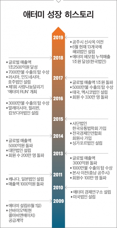 2010년 44억원이던 해외시장 매출은 2018년 2700억원으로 늘었다. 같은 기간 총매출 대비 해외시장 매출 비중도 5.4%에서 21.7%로 크게 상승했다. 글로벌 회원은 200만 명을 넘어섰다. 특히 대만에서는 빠른 성장세를 보이며 연 매출 1200억원, 현지 네트워크 마케팅 업계 7위에 올랐다.