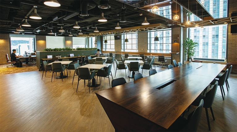 SK는 단순히 공간을 함께 쓰는 개념에서 벗어나 국내 대기업에선 보기 드문 혁신 오피스를 실현했다. 공유 오피스는 크게 근무 공간인 워킹존(working zone)과 복지와 휴식·건강관리 등을 위한 공용 공간인 퍼블 릭존(public zone)으로 나뉜다. 워킹존은 다시 개별 근무 공간인 포커스존과 전체 입주사의 공유·협업 공간인 라운지로 구분된다.