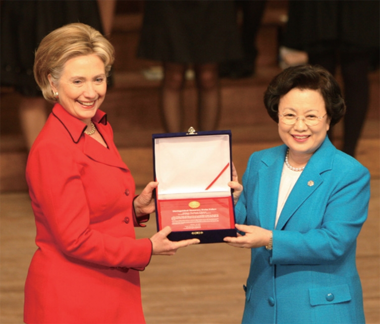 제13대(2006~2010년) 이화여대 총장을 지낸 이 총재는 퇴직 후 더 바쁘게 살고 있다. 제2대 국가브랜드위원회 위원장, 한국학중앙연구원장, 문화재청 문화재위원회 부위원장 및 세계유산분과위원회 위원장 등을 지냈거나 현재 직(職)을 수행하고 있다. 코피온은 국내 최대 규모의 대학생 중심 해외봉사단체이고, (재)한국의 서원 통합관리 보존단은 한국 서원의 우수성을 세계에 널리 알리는 일을 하는 곳이다.