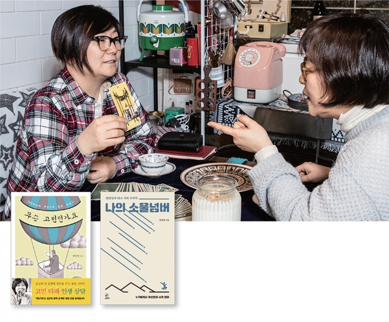 서울 연남동에 사는 한민경(50)씨가 이런 질문들에 해줄 말들이 있을 것 같았다. 타로 마스터. 혹은 연남동 한선생. 자칭 타칭 이런 별명으로 통하는 그는 스무 살 무렵부터 타로카드점을 쳐왔다. 단순히 ‘술사’가 아니다. 지금까지 타로카드점에 관한 책을 두 권 냈다. 2014년 [무슨 고민인가요], 지난해 마지막 달의 [나의 소울넘버](이상 스윙밴드), 이렇게다. 학구적이라는 얘기가 아니다. 혹시라도 책을 읽어보면 아시겠지만 한씨의 이미지는 일반적인 타로 전문가와 다르다.