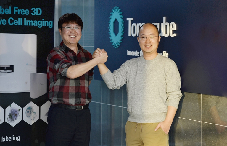 “2014년 블루포인트파트너스 공동창업자 시절 박 대표를 처음 만났습니다. 그땐 현미경이 아니라 필터를 가지고 투자 유치에 나섰죠. 저도 광학 장비사를 창업했다가 엑시트(Exit, 투자금 회수)했던 터라 그 필터에 유독 관심이 갔습니다. 기술이 새 시장을 열 거란 확신이 섰고, 같이하기로 했죠.”(홍기현 토모큐브 대표)