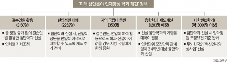 4차 산업혁명을 맞아 인재 양성에 필요한 첨단 특수학과는 만들되 정원은 늘리지 말라는 게 정부의 정책기조이자 국정과제다. 이런 기조 위에서 각종 논의를 거친 끝에 결손인원 활용방안이 나왔다고 교육부는 말한다.