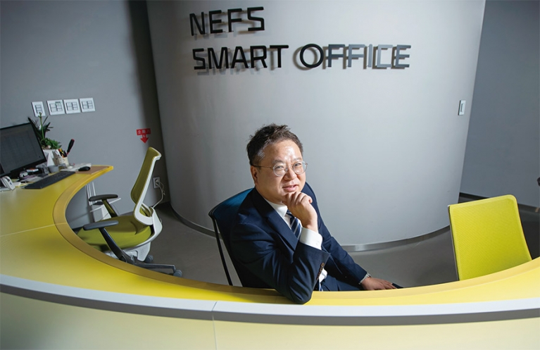 “넵스는 언제나 새로운 시도를 장려했고, 생산, 기획, 시공, 신사업 등 여러 방면에서 활약할 수 있었습니다. 새로운 것이 꼭 경제적 성공을 담보하진 않지만, 복제 마인드만으론 기존 패러다임의 한계를 뛰어넘을 수 없습니다. 스마트오피스는 한국 제조업이 닥친 ‘한계’라는 실타래를 풀 실마리가 될 수도 있죠. 넵스도 가구로 출발해 공간을 봤고, 업을 탐구하면서 사람을 봤습니다. 변화는 거기서 시작됐죠.”